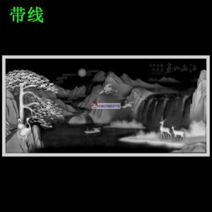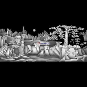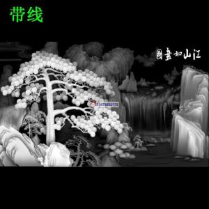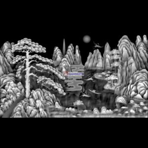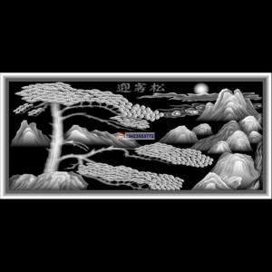 ZYD-030松树江山如画迎客松精雕图迎客松挂屏灰度图山水精雕图