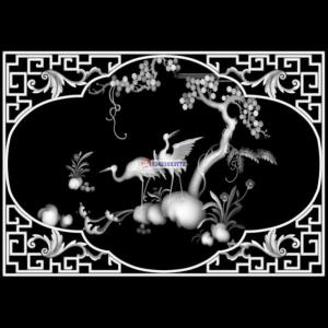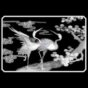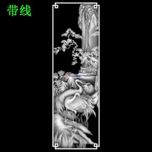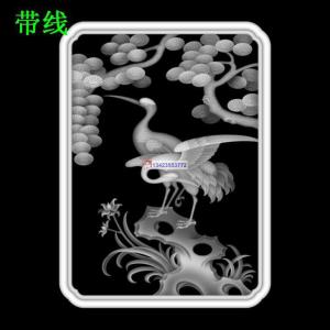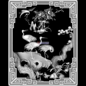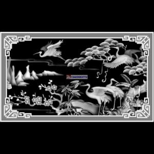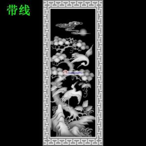 ZYD-046回纹框松树松鹤迎客松竖屏精雕图松鹤灰度图