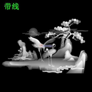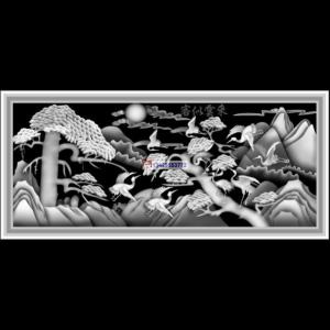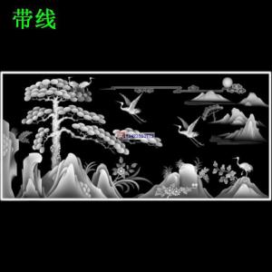 ZYD-048松树山水松鹤横屏精雕图松鹤挂匾灰度图迎客松