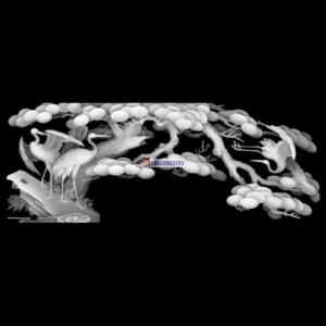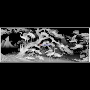 ZYD-038松树松鹤横屏精雕图松鹤挂匾灰度图 松