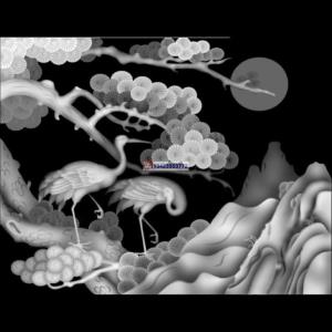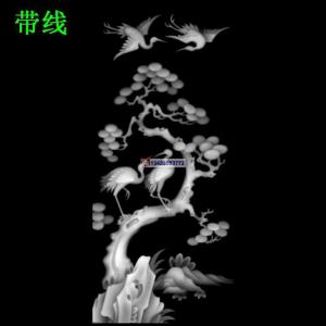 ZYD-064松树竖屏精雕图松鹤灰度图