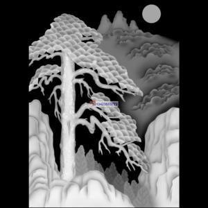 ZYD-043松树迎客松竖屏精雕图松 灰度图