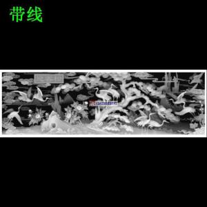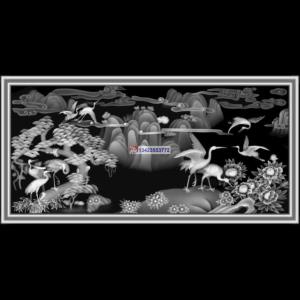 ZYD-045松树松鹤山水牡丹横屏精雕图松鹤挂匾灰度图迎客松