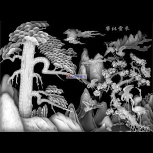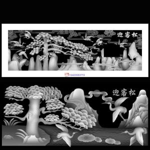 ZYD-049松树 精雕图迎客松挂屏灰度图松鹤精雕图