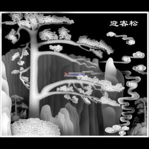 ZYD-035松树迎客松精雕图迎客松挂屏灰度图松鹤精雕图