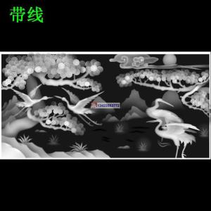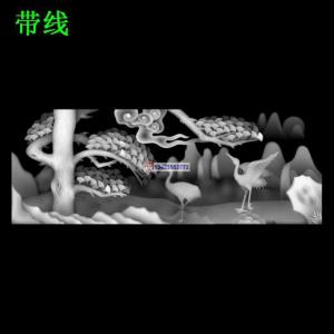 ZYD-044松树 松鹤横屏精雕图松鹤挂匾灰度图迎客松