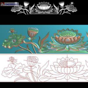荷花围板屉面抽屉精雕图灰度图电脑雕刻图浮雕图