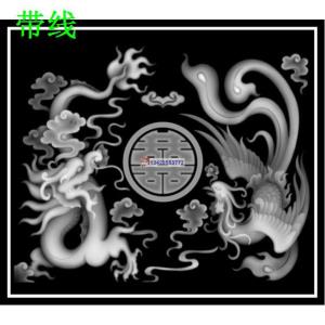 LF-005双喜龙凤方屏小柜门板沙发靠背板精雕图灰度图龙凤方板精雕图龙凤沙发靠背板精雕图