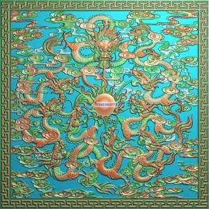 LF-016九龙方屏精雕图九龙方匾精雕图九龙挂屏精雕图九龙挂匾精雕图九龙方挂匾精雕图九龙精雕图灰度图浮雕图