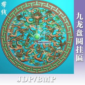 LF-026九龙盘九龙圆挂匾带线九龙精雕图素材九龙浮雕图九龙雕刻素材云龙精雕图专卖龙凤精雕图大全