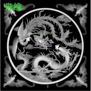 LF-009龙凤方屏小柜门板沙发靠背板精雕图灰度图龙凤方板精雕图