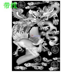 LF-010龙凤戏珠面板精雕图龙凤面板精雕图龙凤精雕图龙凤灰度图龙凤浮雕图龙凤雕刻图