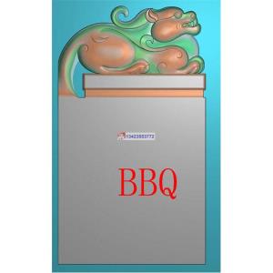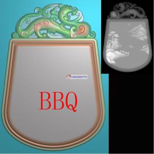 兽头 龙凤2521精雕图白玉牌头框平安无事牌灰度图