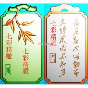 竹子(521)精雕图白玉牌头框平安无事牌灰度图