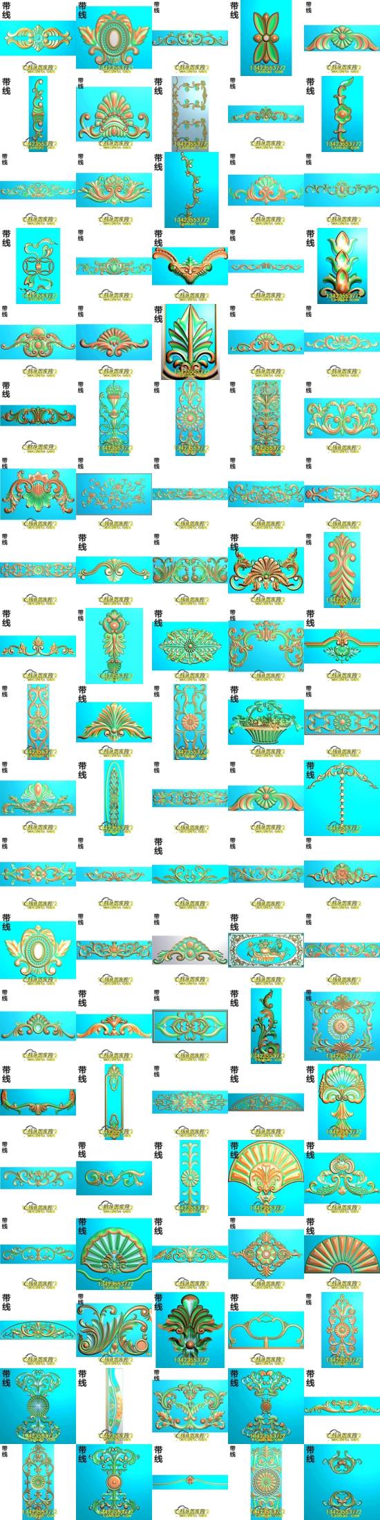 精雕图欧式洋花长条石柱子围板横梁贴花浮雕灰度雕刻图木雕