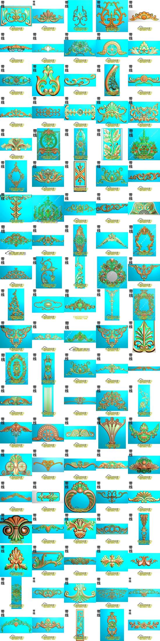 欧式长方形矩形小方块洋花方花门框罗马柱头柱脚贴花精雕图