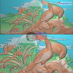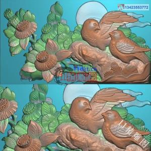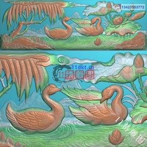古建鸳鸯鸟莲花荷叶莲蓬扫描图精雕图