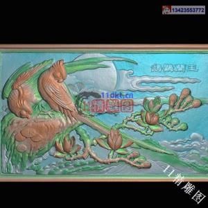 古建鸳鸯鸟荷叶莲花莲蓬扫描图精雕图