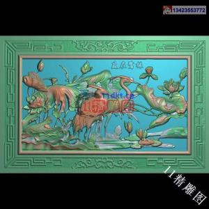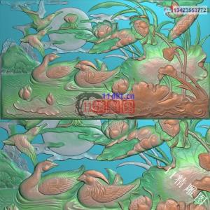 古建鸳鸯莲花荷叶莲蓬扫描图精雕图
