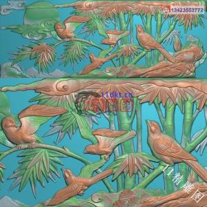 古建竹子喜上眉梢喜鹊梅花精雕图