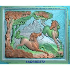 (发邮箱)古建砖雕寺庙动物瑞兽图双马 521