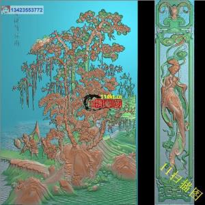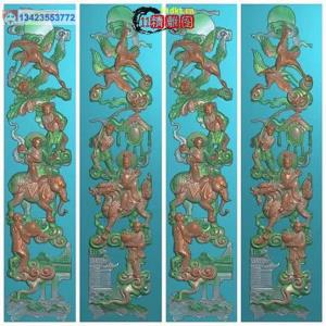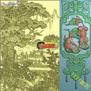 扫描图精雕图灰度图竖人物27-130砖雕石雕浮雕图太平有象麒麟送子