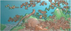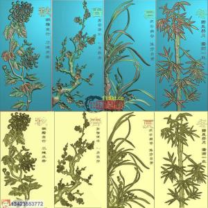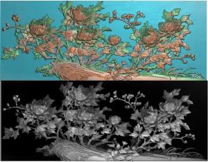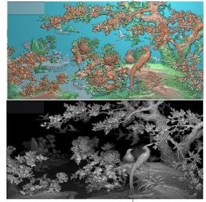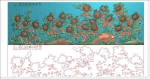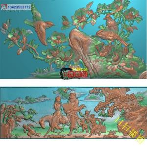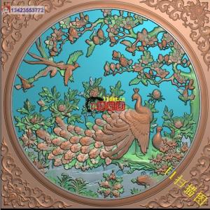 精雕图浮雕扫描锦鸡屏风横板凤凰牡丹孔雀四季花鸟花开富贵