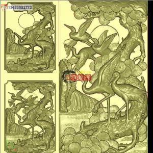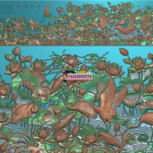 石雕图浮雕图 木雕图 荷香鹤舞190053942没线条扫描图