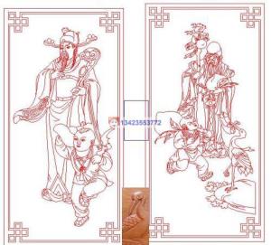线雕图福星寿星板子线条