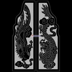 竖龙凤线雕图墓碑花板铣底图文泰专用PLT单龙单凤单线雕刻矢量图