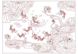 鱼乐荷莲线图雕刻设计CAD线雕图片素材大全
