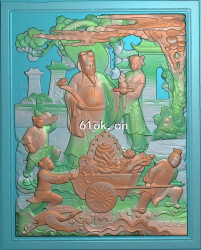 中式童子福寿禄扫描图