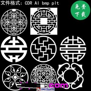 圆形镂空花格玄关隔断窗花矢量图线雕图
