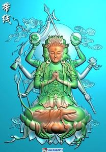 玉雕正身坐莲千手观音斗姆元君挂件带线