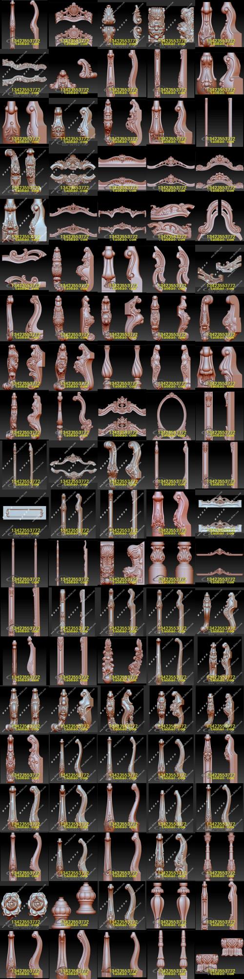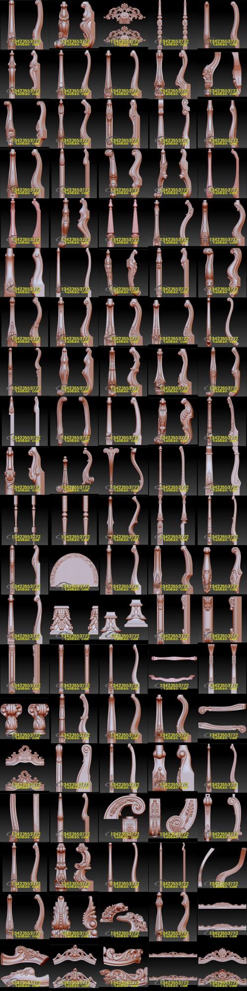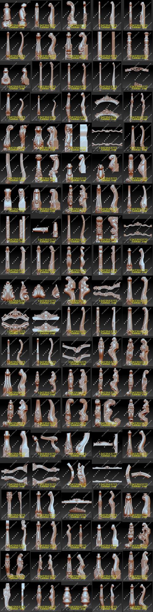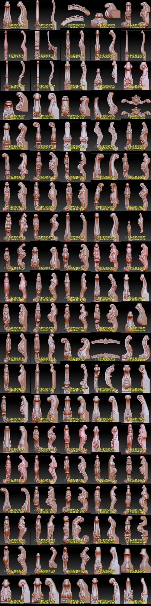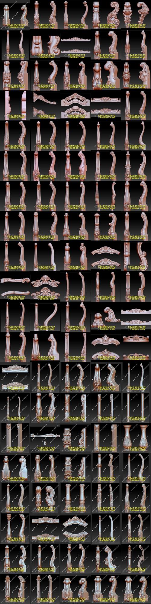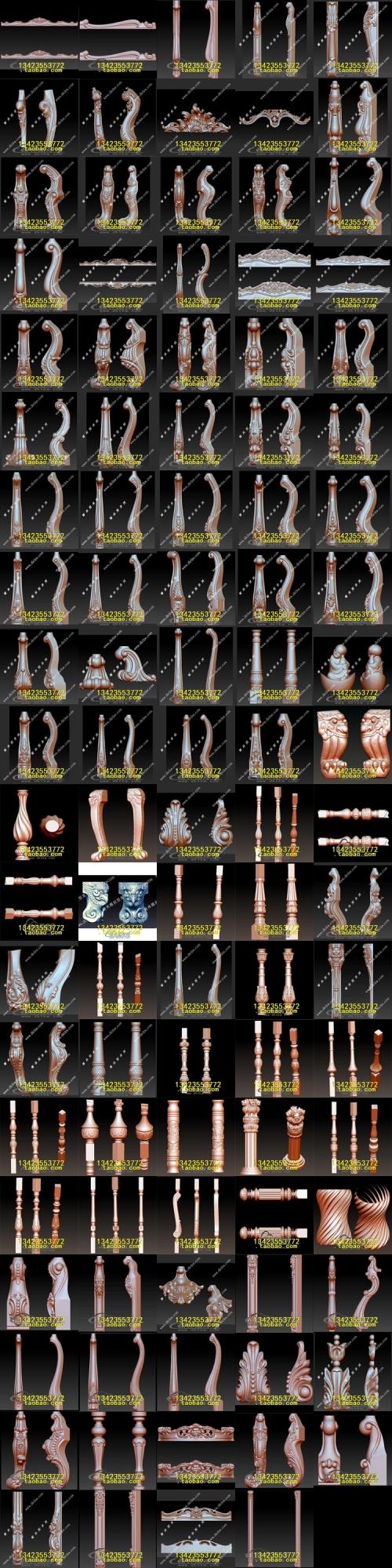 > 欧式家具腿餐桌脚楼梯柱书桌脚STL文件立体图圆雕图浮雕3D雕刻笔 >