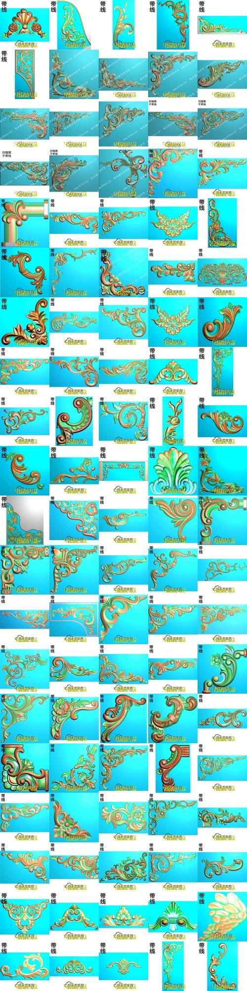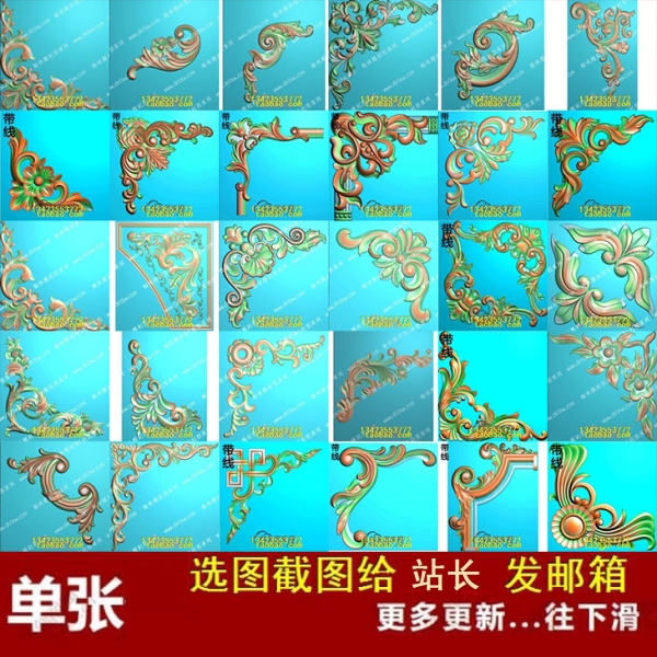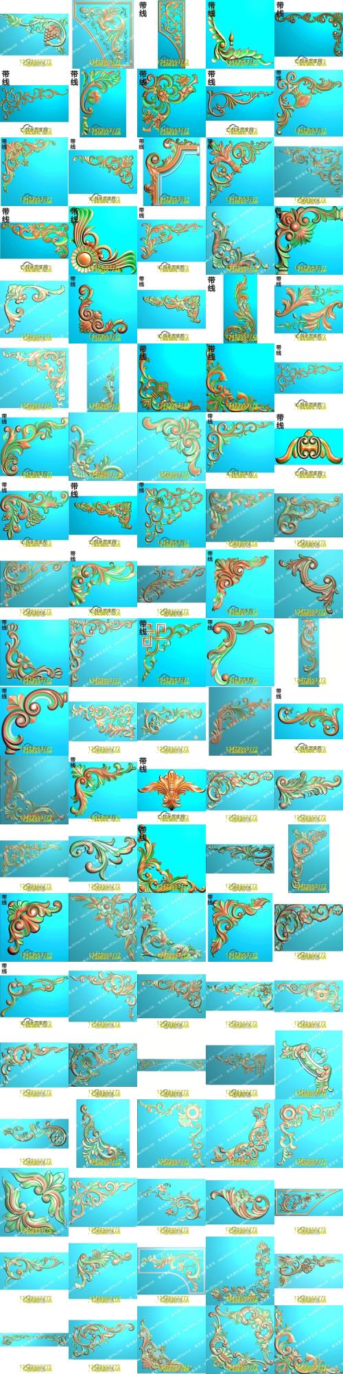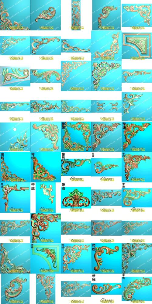 精雕图欧式法式角花木门洋花门上护墙贴花浮雕图灰度石雕图