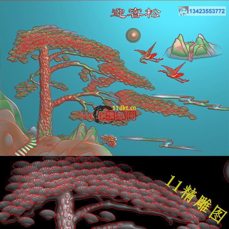 迎客松松鹤延年屏风山水风景壁画精雕图jdp100