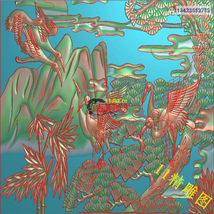 迎客松松鹤延年屏风山水风景壁画精雕图jdp083